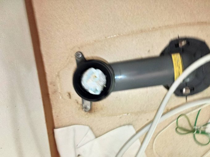 パッドを流したとの事で、便器を外して異物を確認しながら取り除き、作業後は通水確認を行い、つまりが解消しました。