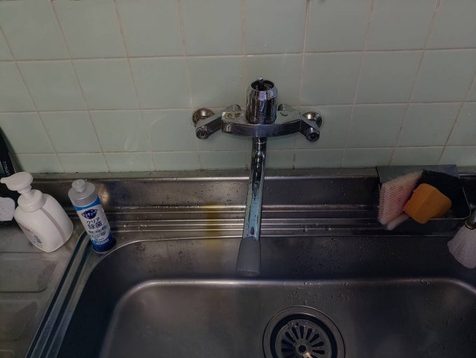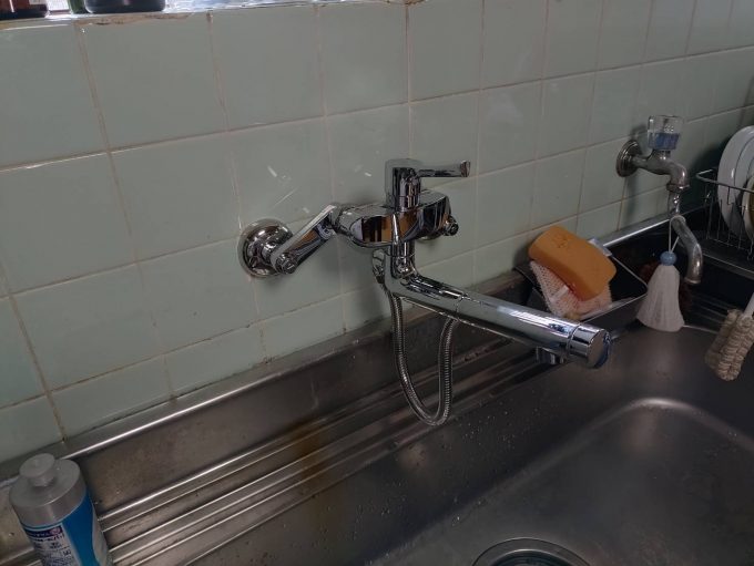 台所蛇口のハンドル部分が折れてしまい、工具を使ってハンドル部分を動かしているが、不便なため新しい物に交換して欲しいとのことでした。