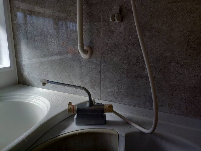 長年使用している浴室蛇口から水漏れしていて、部品交換してもまた水漏れする可能性があるため新しい蛇口に交換して欲しいとのことでした。