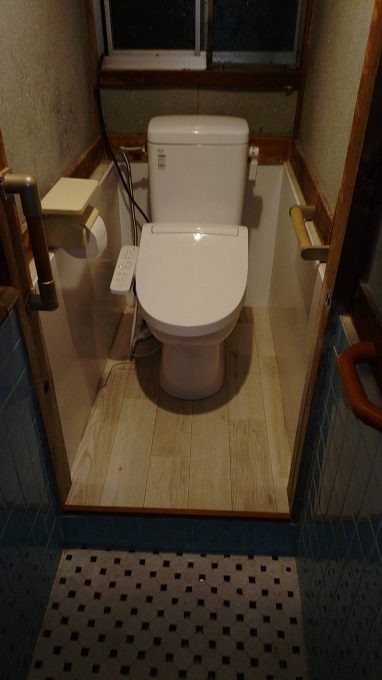 既存トイレの解体工事を行い、床・壁などをタイルからクッションフロアに張り替え、新しくトイレの設置を行いました。
