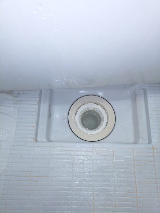 最後に浴槽、洗い場、屋外排水マスまで流れを確認して作業完了しました。