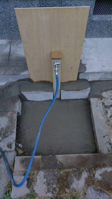 その際に水栓柱も新しく交換しております。またコンクリートの補修もさせていただきました。